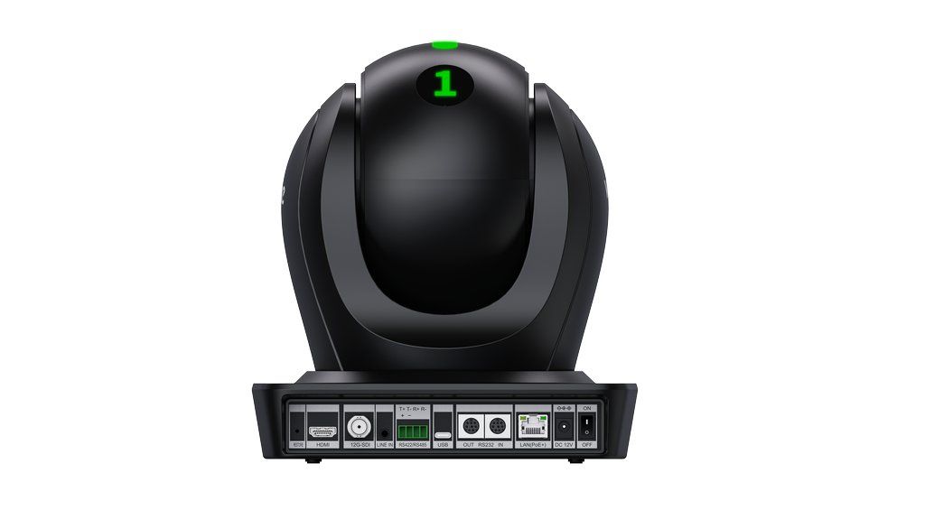 Чёрная PTZ-камера, 4K 60Hz, 12x, 81°, AI Tracking, Tally, H264/H265, HDMI 2.0, Type-C 3.0, 12G-SDI, NDI HX2, RJ-45, 3.5mm Audio, PoE+, RS-485, RS-232 , VISCA/Pelco-D/Pelco-P/ONVIF, дисплей, микрофон.