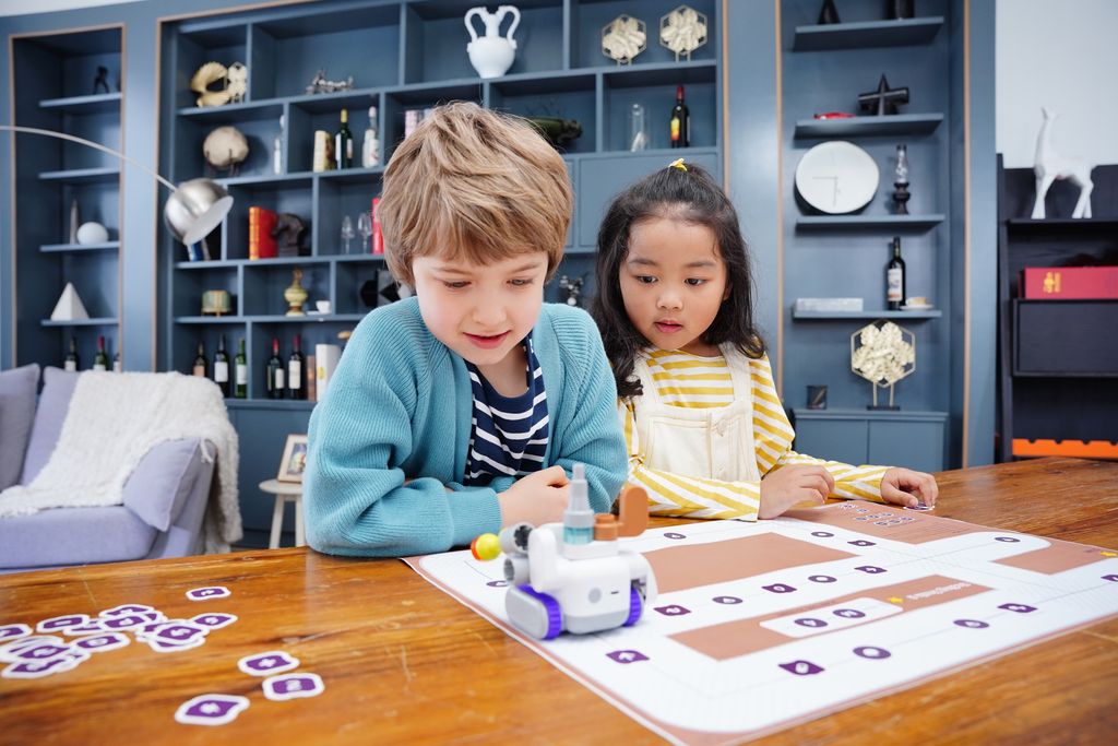 В составе комплекта также роботдля детей от 4 лет, программируемый в упрощенно визуальной среде, для знакомства детей с началами блочного программирования, знакомства с устройством робота, с основными его элементами (датчики, силовые модули, контроллер), развития творческих и инженерных навыков в игровой форме.В составе набора робота содержится программируемый блок управления с двигателями и модулями связи, датчик расстояния, сервоприводный блок и конструктивные элементы для постройки робота. Программирование осуществляется в визуальной среде на мобильном устройстве с использованием игровой дополненной реальности. Подключение по Bluetooth. Робот может двигаться, светиться, танцевать, и издавать звуки.