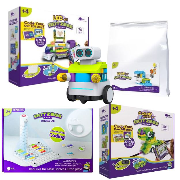 Комплект предназначен для детей в возрасте от 4 лет для занятий по развитию пространственного, логического, критического и математического мышления. В состав комплекта входит робототехнический набор Botzees Classic, ресурсные наборы Botzees Lab и Gear Kit, комплекты Color Sensor kits и LED kits.