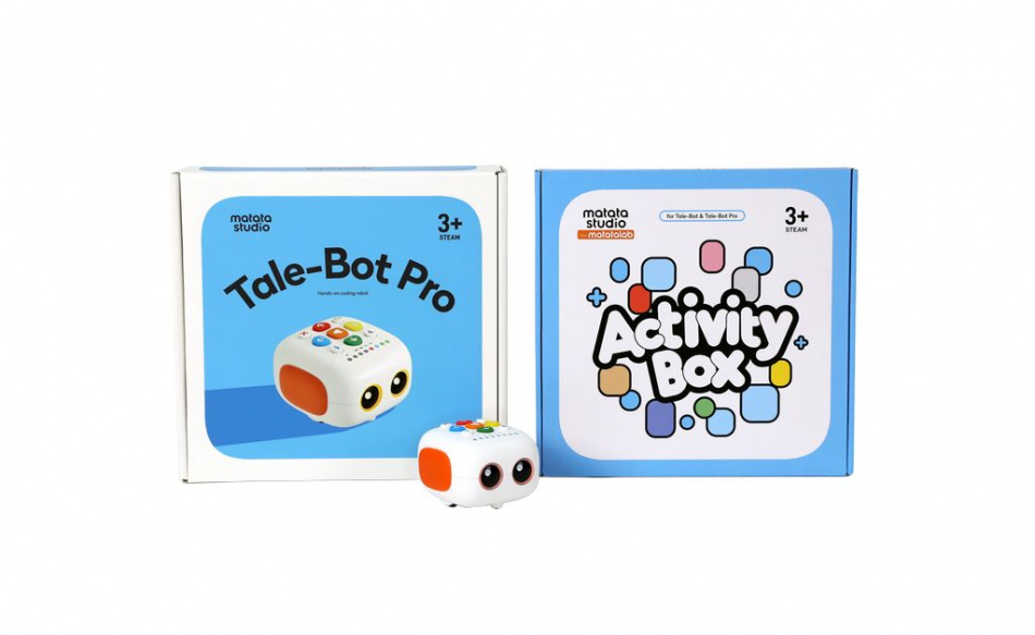 Робот – рассказчик Tale-Bot PRO знакомит детей с основами программирования и построением логических взаимосвязей. Создавая программы, проговаривая сюжет и последовательность действий, ребенок учится ориентироваться в пространстве, знакомится с базовыми понятиями окружающего мира, музыки, математики, формами и цветом предметов, развивает речь и учится общаться со сверстниками. Благодаря новой технологии считывания информации, робот Tale-Bot Pro может распознавать специальные карты или наклейки, давая голосовые команды, рассказывая сюжеты, поощряя правильно выполненные задания, тем самым становясь ребенку полноценным другом и компаньоном в изучении программирования. Робот запоминает до 256 шагов, имеет функцию записи (встроенный микрофон), длительность записи – 30 секунд, память до 256 30 – секундных аудио файлов, цвет индикаторов программ такой же, как у командных кнопок, помогает детям освоить и запомнить алгоритм программирования, развивает творческие способности и навыки рассказывания историй.