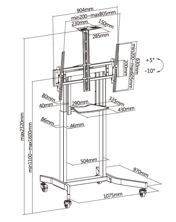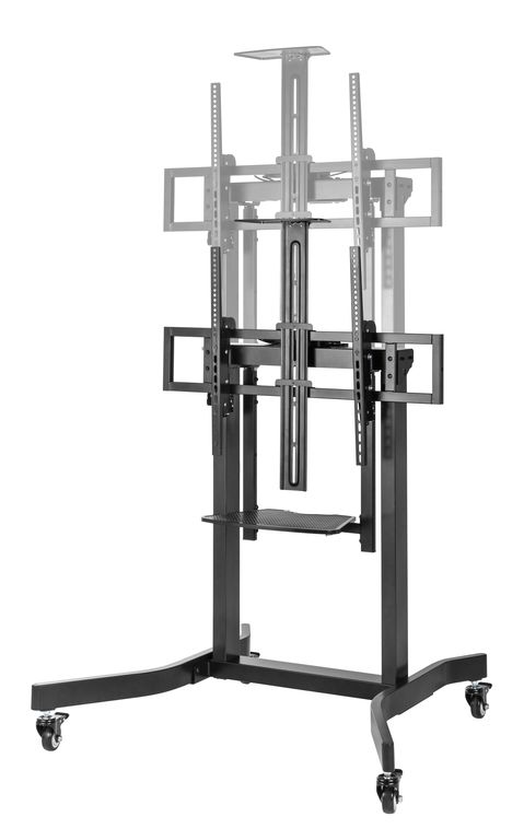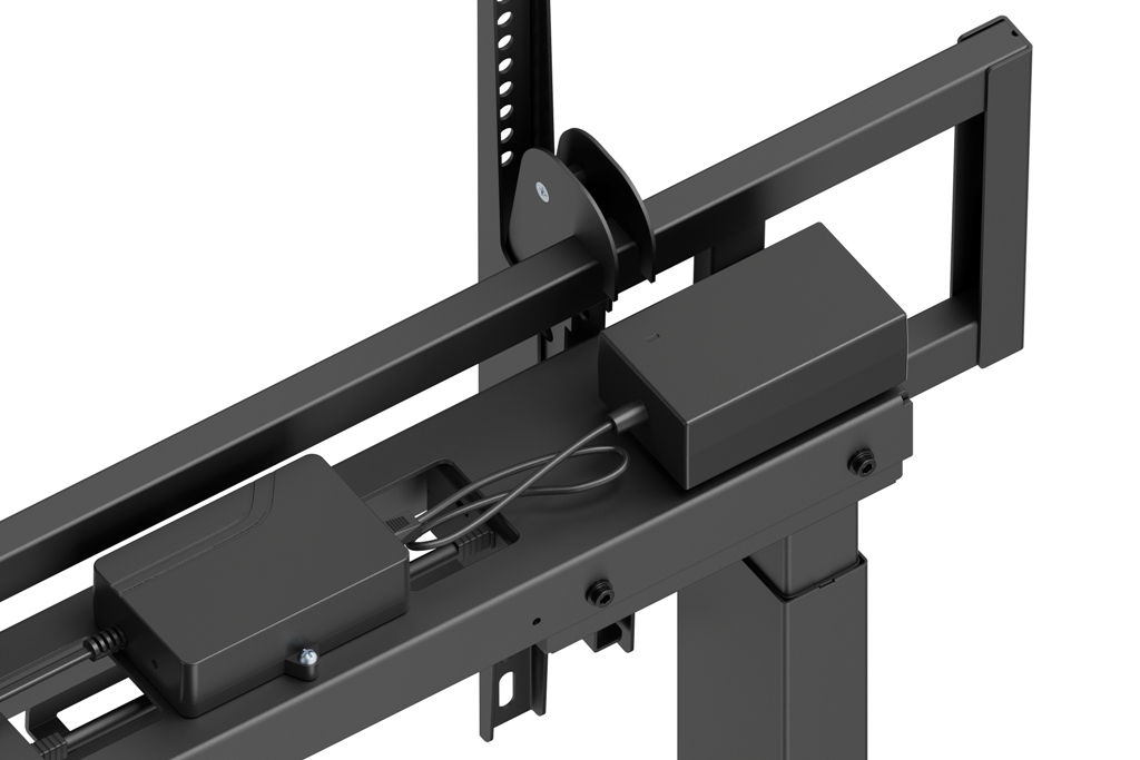 Для ТВ и панелей 50"-100" до 120 кг, VESA до 800x600 мм, наклон -10°/+5°, регулировка высоты 1100-1600 мм до центра ТВ, пульт ДУ в комплекте